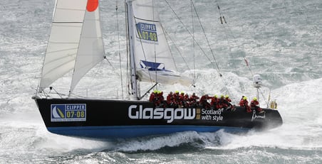 "Glasgow" war eine Clipper-Yacht der 2. Generation, ein 68-Fuß-Schiff, gezeichnet von Ed Dubois. Als Co-Sponsor war der Speyside Whisky Benromach an Bord - der sich von da an so gut gut verkaufte, dass die Lagerbestände bald nach dem Rennen aufgebraucht waren. Auch "Old Pulteney" (Rennen 2013/14) verkaufte zwei Sonderserien.