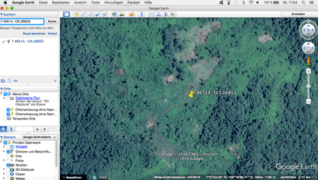 So sieht "mein" Tropenwald auf Google Earth im Moment aus (oben). Es ist kein dichter Wald, sondern eher Gras- und Buschland, soll aber wieder richtiger Regenwald werden. Ich werde alle paar Jahre mal vorbeischauen. Unten: "Meine" Pflanzer bei der Arbeit